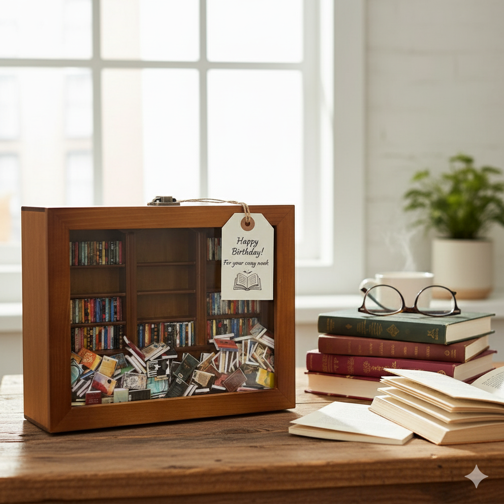 Looking for something unique yet thoughtful? This ornament doubles as a quirky bookshelf and anxiety-soothing gift. Whether it’s a birthday, Christmas, or just because—this tiny cabinet delights readers and desk dwellers alike.